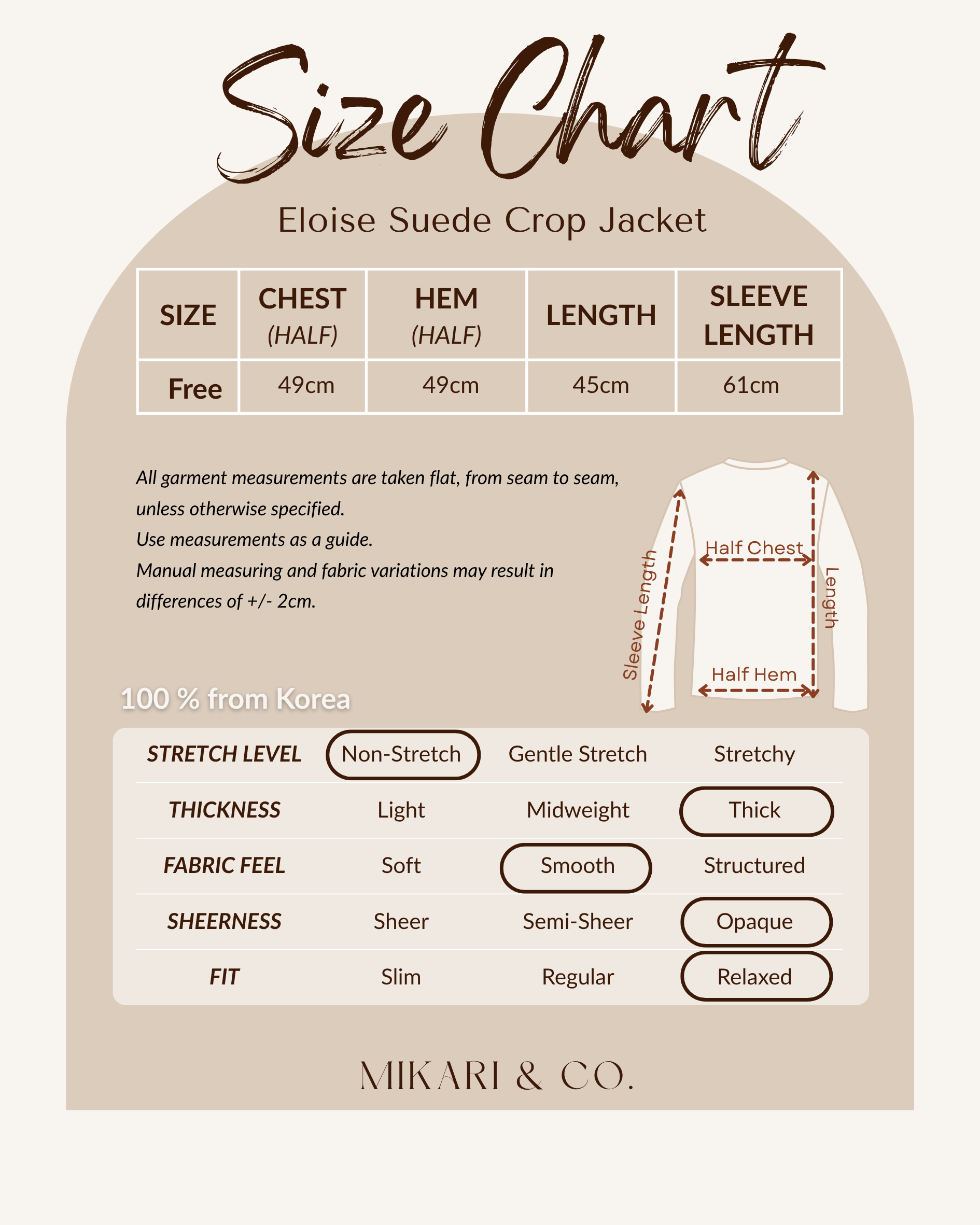 The Eloise Suede Crop Jacket is a statement outerwear piece that combines luxe texture with a modern cropped cut. Crafted from soft suede, this jacket adds effortless sophistication to both casual and dressy ensembles.