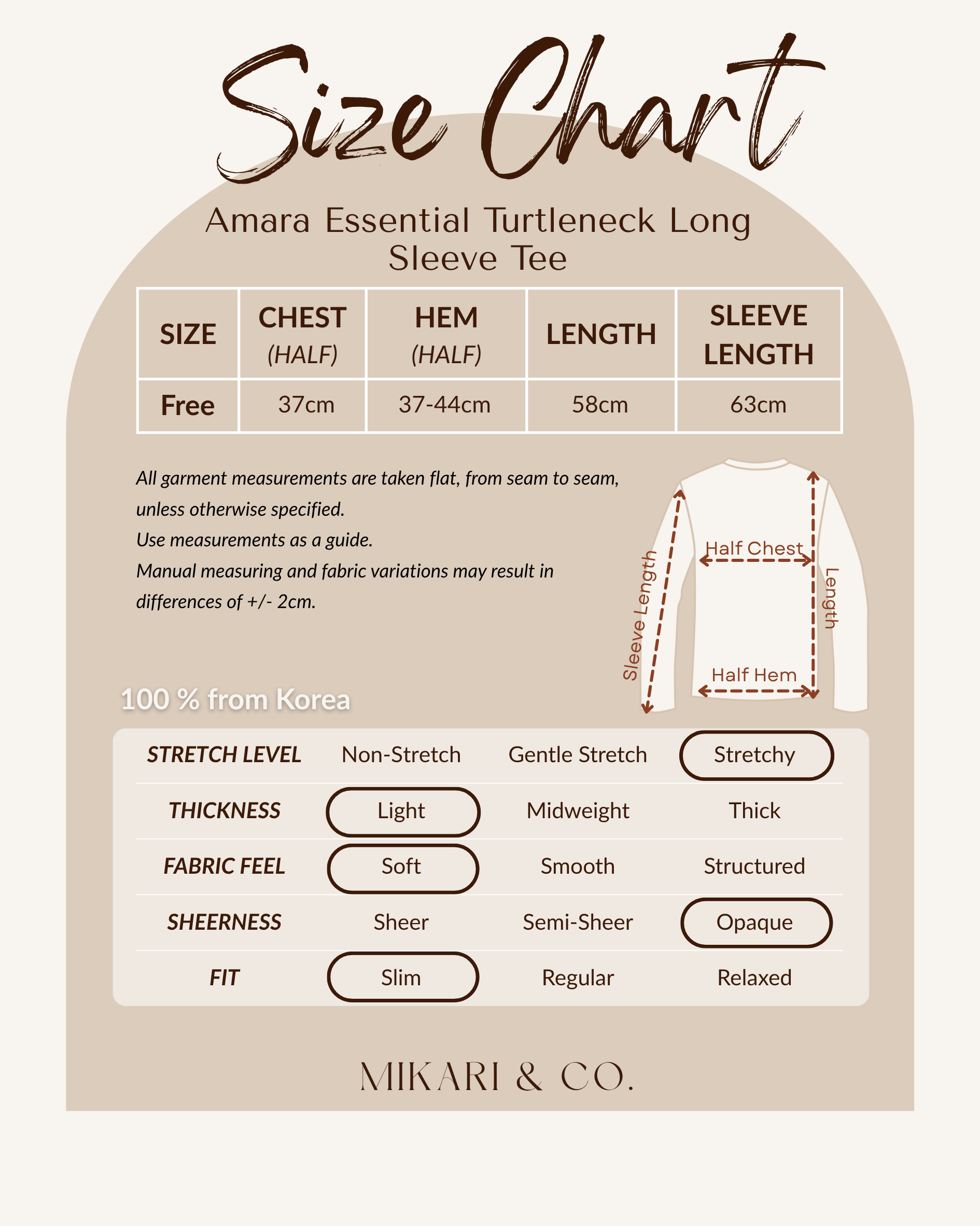 The Amara Essential Turtleneck Long Sleeve Tee is a cold-weather essential designed for ultimate warmth and style. Featuring a soft, fleece-lined interior and a sleek turtleneck silhouette, this piece is ideal for layering or wearing solo. The stretch fabric ensures a flattering, snug fit while offering all-day comfort.