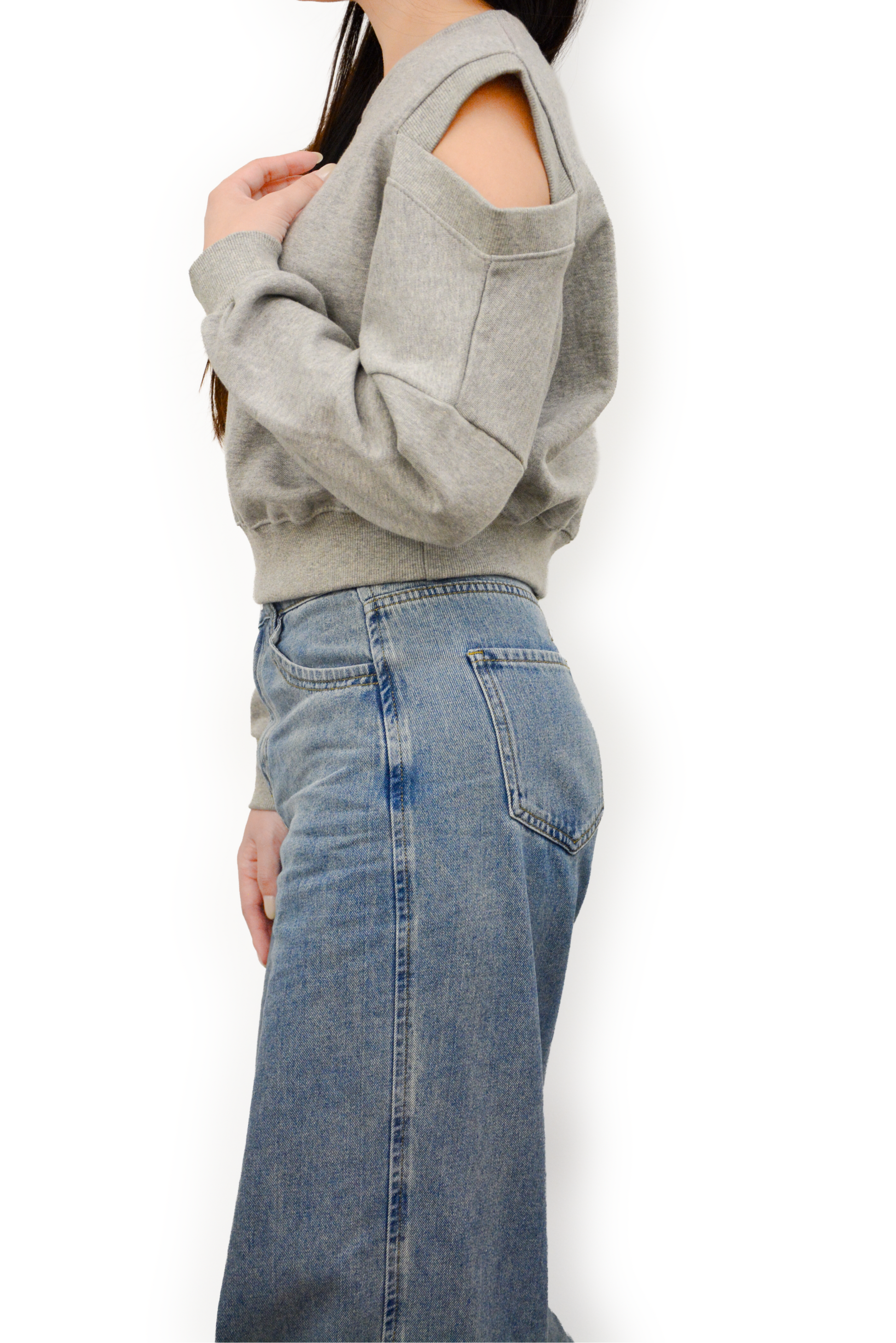 Experience refined comfort with the Chroma Cutout Cotton Sweatshirt, a modern staple designed for versatile styling. Crafted from 100% pure cotton, this piece offers comfortable and breathable wear. Its comfortable semi-crop length and contemporary shoulder cutouts create a subtle yet stylish statement, making it an essential addition to your sophisticated, everyday wardrobe.