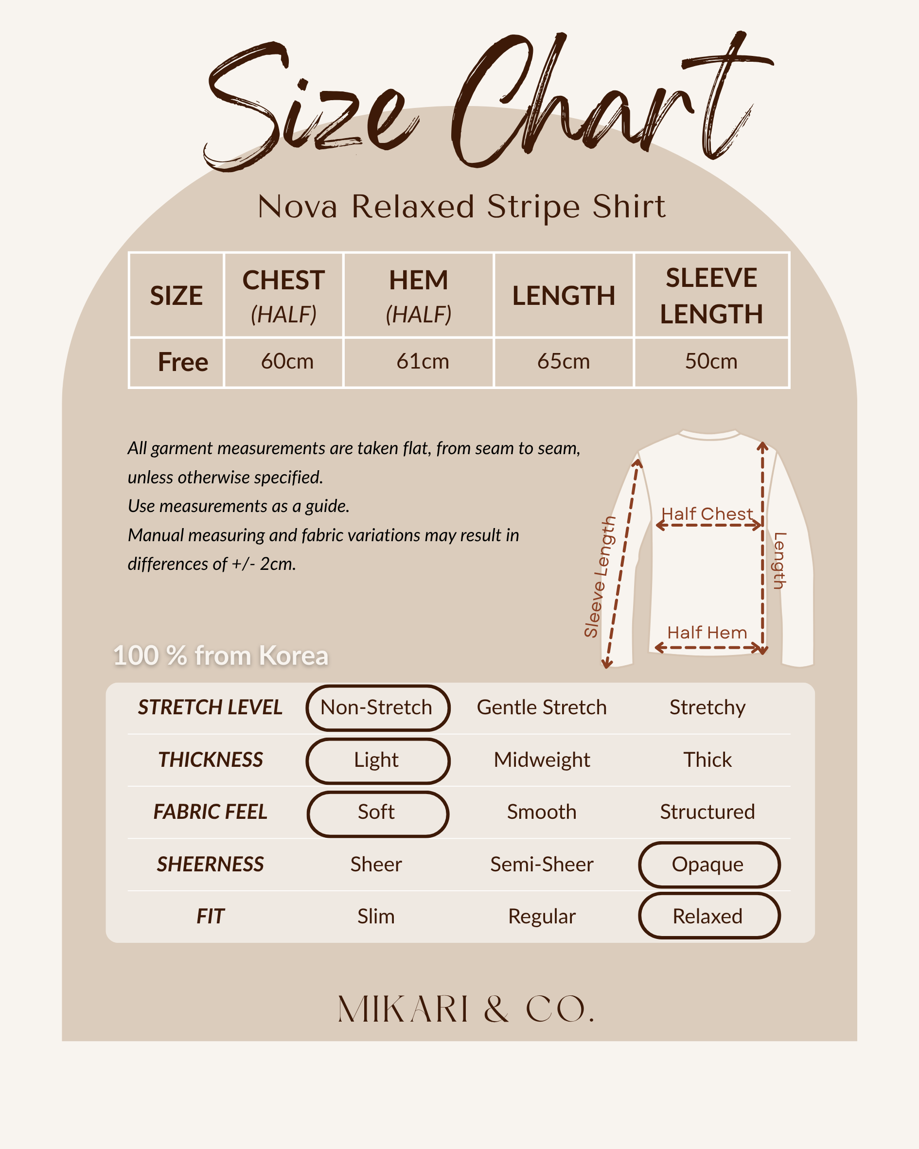 The Nova Relaxed Stripe Shirt is a refined take on everyday elegance. Featuring a timeless stripe pattern and a relaxed fit, this shirt is designed for effortless sophistication.